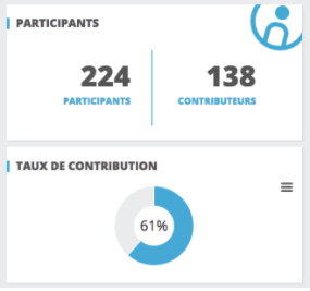 Le taux de contribution, c’est le nombre de participants (personnes qui ont posté une idée ou un commentaire) par rapport au nombre d’inscrits au projet.
