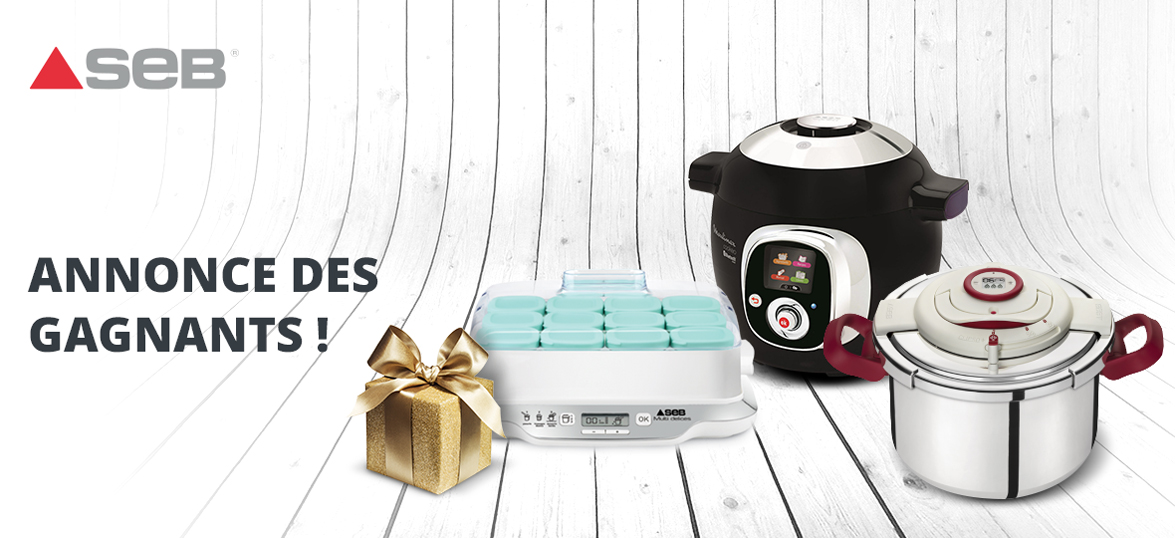 Nous sommes heureux de vous annoncer les gagnants du concours d’idées “Imaginons le site culinaire idéal” organisé par le groupe SEB ! Merci à tous pour votre participation et vos super idées et félicitation à tous nos gagnants ! Fionaburel29 gagne le multicuiseur intelligent connecté, Coockeo Connect ! Chloecav et Vallier remportent l’autocuiseur avec minuteur intelligent, Clipso Plus Précision! Isalise, Sand.corsi, Claraloic, Canarozzo et Andyfact pourront faire des desserts gourmants grâce à la la yaourtière multidélices. Enfin SÃ ©bastien Bibou, Nath51420, Mimi33, Armel, Maud, Cccpnca1, Celinedunord, Nanou, Bellame.isa, Simonnet, SandraDi, Martine, Delfane73200, Tazoonnette, PatDef, Virgile, Clemenec08, Audrey, Sophie, Annechok recevront un tablier Coockeo idéal pour cuisiner avec style ! SEB contactera directement les gagnants pour leur faire parvenir leurs récompenses dans les plus brefs délais.