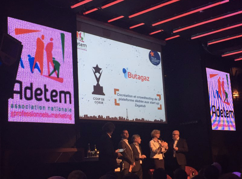 C’est la très bonne nouvelle de la semaine. Le projet communautaire de BUTAGAZ “LE GARAGE DE BOB” (powered by FANVOICE) a été élu “COUP DE COEUR DU JURY” AU GRAND PRIX DU MARKETING de l’ADETEM (le 1er rendez-vous des marketeurs en France depuis 11 ans ! )dans la catégorie EXCELLENCE B2B. Un fois de plus, l’écoute client est mis à l’honneur… 1 an après la rencontre, la récompense… Quelques semaines à peine après notre rencontre au CLUB OPEN INNOVATION en 2015, l’équipe FANVOICE inaugurait la 1ère plateforme de CROWTESTING grand public mettant en relation les clients d’une grande marque et des startups. Cette plateforme, c’est “LE GARAGE DE BOB”, en référence à BOB, l’ours bleu mascotte de BUTAGAZ. Depuis, c’est une douzaine de projets qui ont été beta-testé sur la plateforme, une vraie mécanique de co-création enclenchée avec 1 millier de clients, et des tonnes d’enseignements sur les attentes des consommateurs qui ont été détectées. Cette semaine c’est la récompense, avec ce prix décerné par la profession pour saluer cette initiative innovante. On l’avoue, ça fait plaisir… Pour ceux qui ne connaissent pas encore le projet, voici une vidéo de rattrapage. Pour en savoir +, découvrez l’Interview d’Emmanuel Trivin, PDG de BUTAGAZ par les ECHOS. Vous ne connaissez pas le Prix ADETEM du Marketing ? La Nuit de l’Adetem s’est imposée depuis quelques années comme le grand rendez-vous estival dédié au marketing. Avec la révélation en 2013 des 1ers Prix de l’excellence marketing, l’événement est devenu un lieu incontournable de veille des initiatives marketing les plus disruptives et innovantes. Cette année c’est BUTAGAZ qui a convaincu le jury et obtenu 3 récompenses pour ses innovations marketing les plus remarquables de l’année Par innovation, L’ADETEM entend la capacité d’un annonceur (avec ses partenaires) à bousculer les modèles établis, à s’engager dans une démarche inédite, à prendre des risques pour le lancement d’un nouveau produit et service, à rompre avec les codes du marché, à faire évoluer le prisme de la relation client, à repositionner avec audace un produit, etc.). Prix du Marketing B2B, Coup de coeur du marketing B2C, et Grand Prix OR de l’excellence Marketing, BUTAGAZ a prouvé en 1 soirée qu’une société centenaire pouvait elle aussi briller par sa capacité à innover…