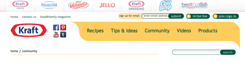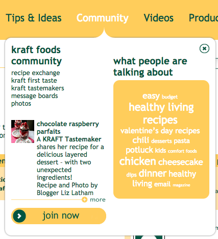 Personne n’est dupe, la fidélisation du client est l’un des enjeux principaux des marques. Mais quand ces mêmes marques lancent des programmes “gagnant-gagnant”, il n’est plus question de marketing offensif (celui qui dérange) : la fidélisation prend une autre forme avec “les clubs” et les “communautés” de marques. “J’y gagne, donc je contribue !” Ces espaces d’échanges “brandés” se multiplient et connaissent un vrai succès, profitable aux marques comme à leurs clients. Lieu d’échange entre les membres, et source de “bons plans”, ils permettent à ces derniers de partager astuces, conseils ou tout simplement de débattre sur un sujet et d’exprimer leur avis. Créer un lien particulier à l’aide de la discussion telle est l’idée du club, il ne s’agit pas juste de fidéliser sa clientèle mais surtout de l’inciter à « aimer » les entreprises qu’elle fréquente, travailler sur “la préférence de marque”. Un rapport basé sur les émotions prend place dans le monde du marketing, il devient alors possible de créer un sentiment d’attachement avec les consommateurs qui dépasse le champ commercial. Devenu un outil de communication et de fidélisation du client à part entière le club n’en est pourtant qu’à ses débuts ! Le discours de communication associé au club vise à construire une relation privilégiée avec le consommateur à travers un espacé qui lui est dédié. Les clubs des grandes marques tendent à être largement ouverts, ce qui leur permet de collecter avis et informations auprès d’un large échantillon de clientèle. Il existe de nombreux clubs aux techniques d’approches différentes : . Kraft Food nous offre un bel exemple avec sa communauté en ligne « Kfraftrecipes » :