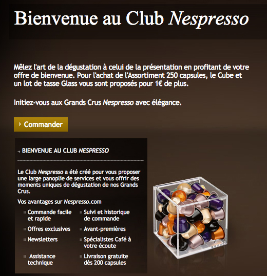 La plateforme se présente comme une sorte de forum gigantesque qui permet d’échanger recettes de cuisines, conseils, et avis sur la marque et ses produits. Le site rencontre un vrai succès, des milliers de membres prennent un réel plaisir à discuter et partager leurs recettes à la communauté. . Nespresso Club : il est difficile de ne pas adhérer à ce club à moins de n’effectuer ses achats qu’en boutique, puisque, lors des commandes en ligne une adresse e-mail est requise et l’adhésion au club est immédiate.