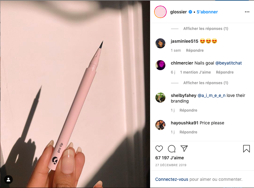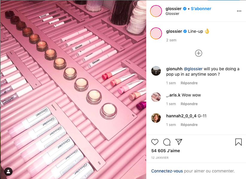 Si la marque sait faire parler ses consommateurs, elle sait aussi faire parler d’elle, à l’image de la page Boyfriend at Glossier (https://www.instagram.com/glossierboyfriends/?hl=en) qui permet à tous les boyfriend désabusés (mais au sens de l’humour affuté) de partager aussi leurs plus belles photos. Une stratégie d’exposition et de bouche-à-bouche de bout en bout qui a permis de faire de Glossier le cas d’école par excellence.