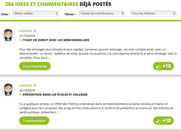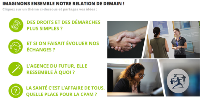 Une expérience inédite qui, deux mois après son ouverture, comptabilise près de 300 idées et commentaires. Une initiative remarquée et très largement reprise des médias – en témoigne l’article suivant du Parisien : http://www.leparisien.fr/yvelines-78/yvelines-avez-vous-des-idees-pour-ameliorer-les-services-de-la-secu-07-10-2018-7913202.php L’appel à idées portent sur un certain nombre de thèmes que pose la CPAM : des droits et des démarches plus simples, un contact toujours plus simple et pratique, l’agence du futur, et comment se sentir mieux accompagné en matière de prévention et santé.