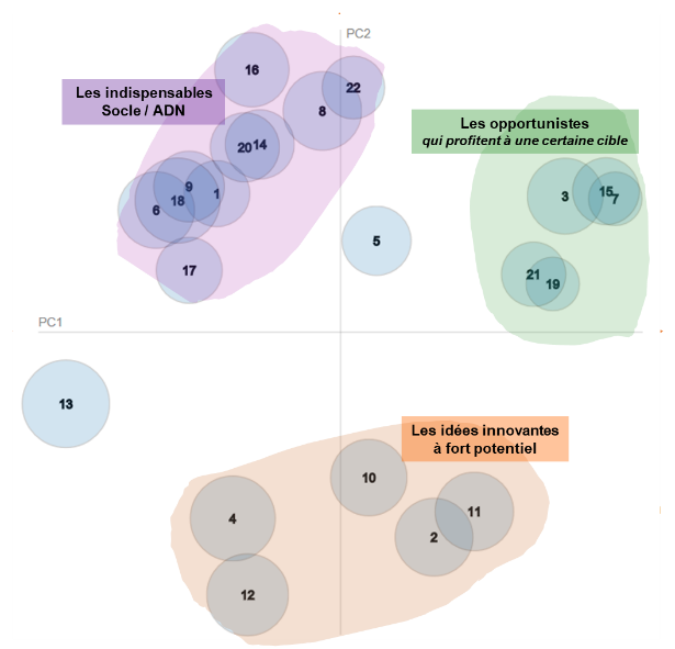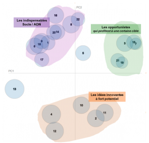 Sur la plateforme FANVOICE, les membres de communautés de marques participent à l’innovation des entreprises en réalisant plusieurs actions. Ainsi, chaque membre de la communauté peut poster des idées ou des feedbacks et commenter les idées postées par les autres membres. Ces verbatim, une fois recueillis, représentent des centaines de milliers de mots. L’analyse sémantique de ce corpus intervient pour en valoriser les contenus : quantification et qualification des résultats, détection des zones de convergence formant les principales thématiques avec leurs poids et leurs corrélations, et identification des signaux faibles porteurs d’informations pertinentes. L’analyse aide à établir une cartographie des perceptions, attentes, et inquiétudes de la communauté et révèle d’autres enseignements que l’homme aurait difficilement identifiés dans la mesure où le signal était trop faible. La démarche permet aujourd’hui de repérer un signal faible qui nécessite une interprétation au regard de la stratégie de la marque et de ses objectifs. Cela pourrait être une opportunité de marché à saisir pour la marque, ou une zone de vigilance qui soulève des interrogations auprès de la communauté, voire une innovation de rupture. Par exemple, dans le cadre d’une campagne exploratoire organisée par une grande entreprise dans le secteur des boissons, la communauté FANVOICE a été mobilisée pour échanger autour du « moment Bière ». Les participants ont été invités à s’exprimer sur quatre thématiques pour explorer le sujet : les éléments pour un bon moment bière, les frustrations, le dernier moment bière, les idées innovantes pour le rendre encore meilleur. La campagne a permis de récolter un corpus très riche de plus de 2400 idées et commentaires, et la solution d’analyse sémantique a permis ensuite de construire la cartographie du « moment Bière idéal ». L’analyse de cette cartographie a aidé les chargés d’études à valoriser les principales thématiques abordées (avec leurs poids et les corrélations entre elles) et à les interpréter au prisme de la problématique adressée (les indispensables, les opportunistes, et les idées à fort potentiel). Enfin, il en convient d’en tenir compte, la data ne parlera pas toute seule, il faut se donner les moyens humains de la faire parler. Les 1ers indicateurs seront mis en avant automatiquement sous la forme de data viz ou de clusters, intégrant de plus en plus de corrélations, mais c’est encore l’homme qui les rend compréhensibles dans un rapport d’analyse avec des décryptages. Les temps d’analyses sont divisés par 2 à 10 suivant les projets, mais l’humain reste indispensable. Il s’agit donc encore à ce jour d’une approche “cyborg” : mi-homme, mi-machine. Bref, n’ayons pas peur de nous faire remplacer trop vite par un OS, les datas, algorithmes et autres Intelligence Artificielle vont encore avoir longtemps besoin des hommes pour être utiles et pertinents.