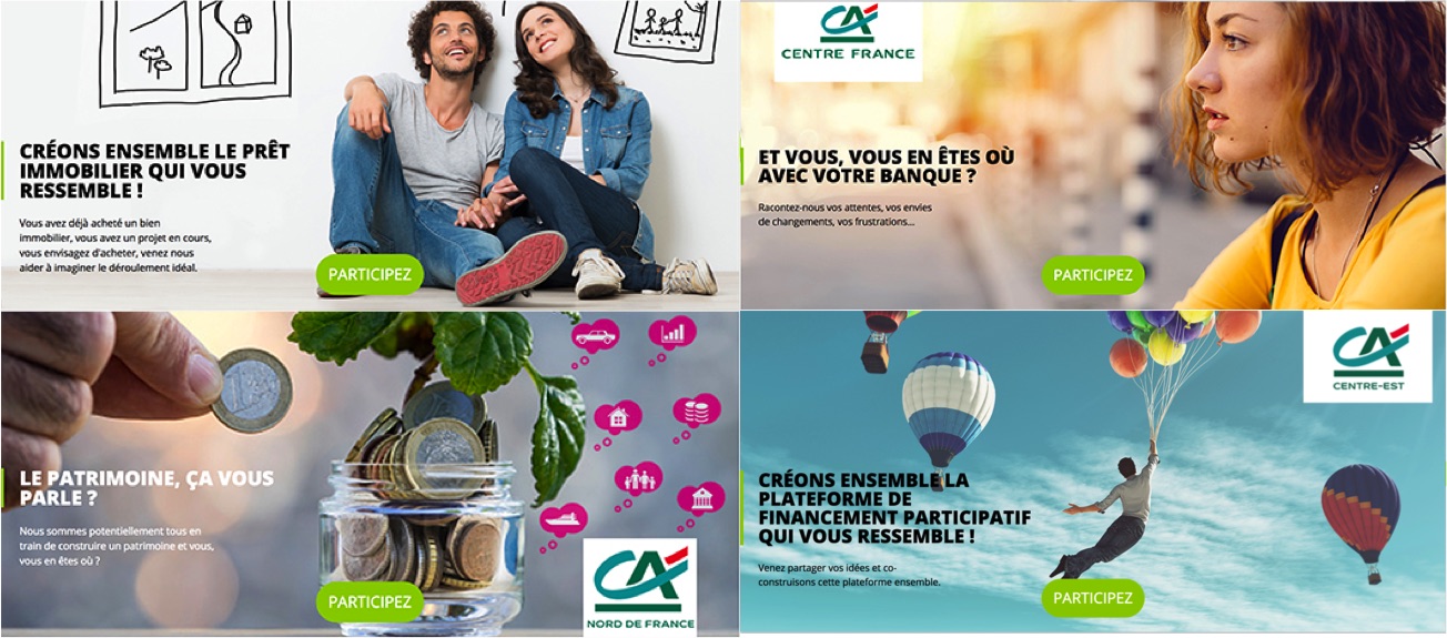 La” voix client” est un élément d’importance pour le Crédit Agricole. En effet, comprendre les attentes et besoins des clients a toujours été un moteur pour la marque. Selon Christophe BLERET, chef de projet digital chez Crédit Agricole SA, “co-créer ce n’est pas nouveau au Crédit Agricole, ce qui l’est c’est l’utilisation d’une plateforme qui capitalise sur les nouveaux usages liés à internet”. La plateforme de co-création offre l’opportunité à chaque caisses régionales de mettre en place des projets de “crowdstorming” (brainstorming géants) avec leurs clients, pour recueillir leurs idées d’améliorations et d’innovations, ou tester des concepts qui pourrait demain être proposés en régions. “Notre plan à moyen terme vise à développer de nouveaux produits et services, transformer des process et là nous avons besoin de la vision client et la co-création est parfaitement adaptée à cela”, précise Christophe BLERET.