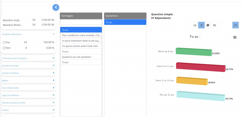 En bonus : nous avons également revu le design des réponses aux sondages dans notre dashboard et nous avons intégré l’outil de segmentation qui permet de faire des tris croisés et une prélecture des résultats depuis le backoffice et avant l’intervention des chargés d’étude.
