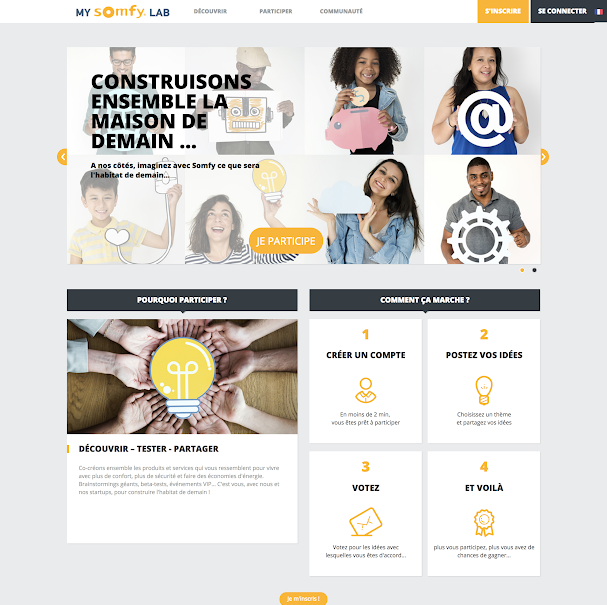 Somfy, spécialiste de la domotique et des systèmes motorisés pour la maison porte l’innovation au coeur de son ADN. C’est dans cette dynamique qu’est né My Somfy Lab, plateforme de co-innovation ouverte à tous. L’idée est simple : rassembler en un seul et même endroit la marque et les clients. Cela permet de partager leurs avis sur les produits et services de la marque et potentiellement tester en avant-première des innovations à sortir.
