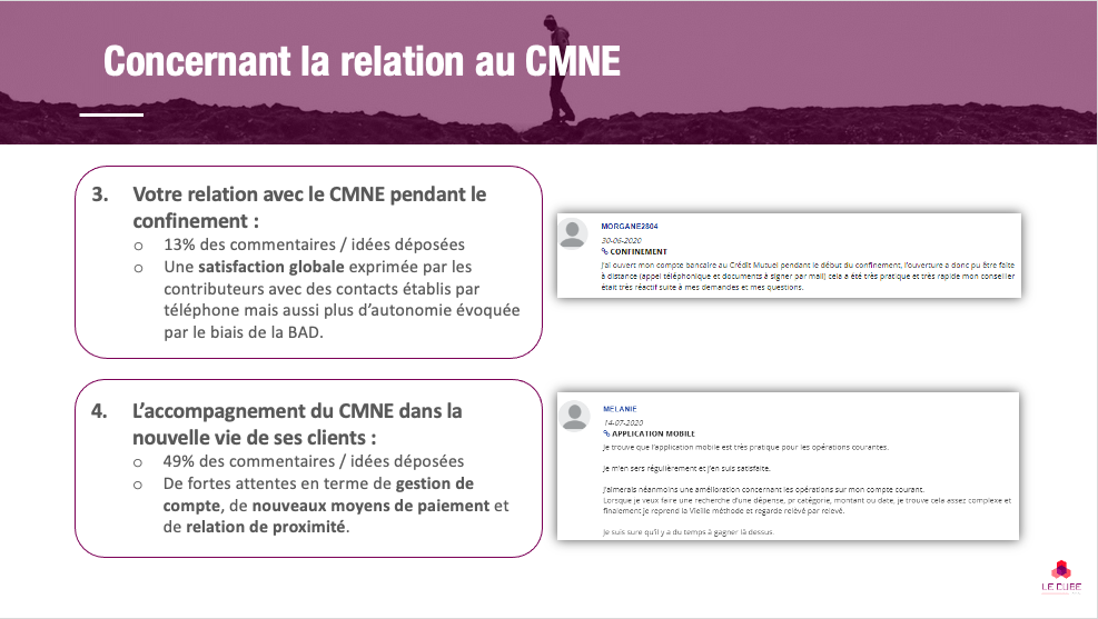 Au-delà de la constitution du noyau communautaire, cette campagne a permis de mieux comprendre les enjeux de la relation du CMNE avec ses clients (satisfaction et accompagnement au quotidien).