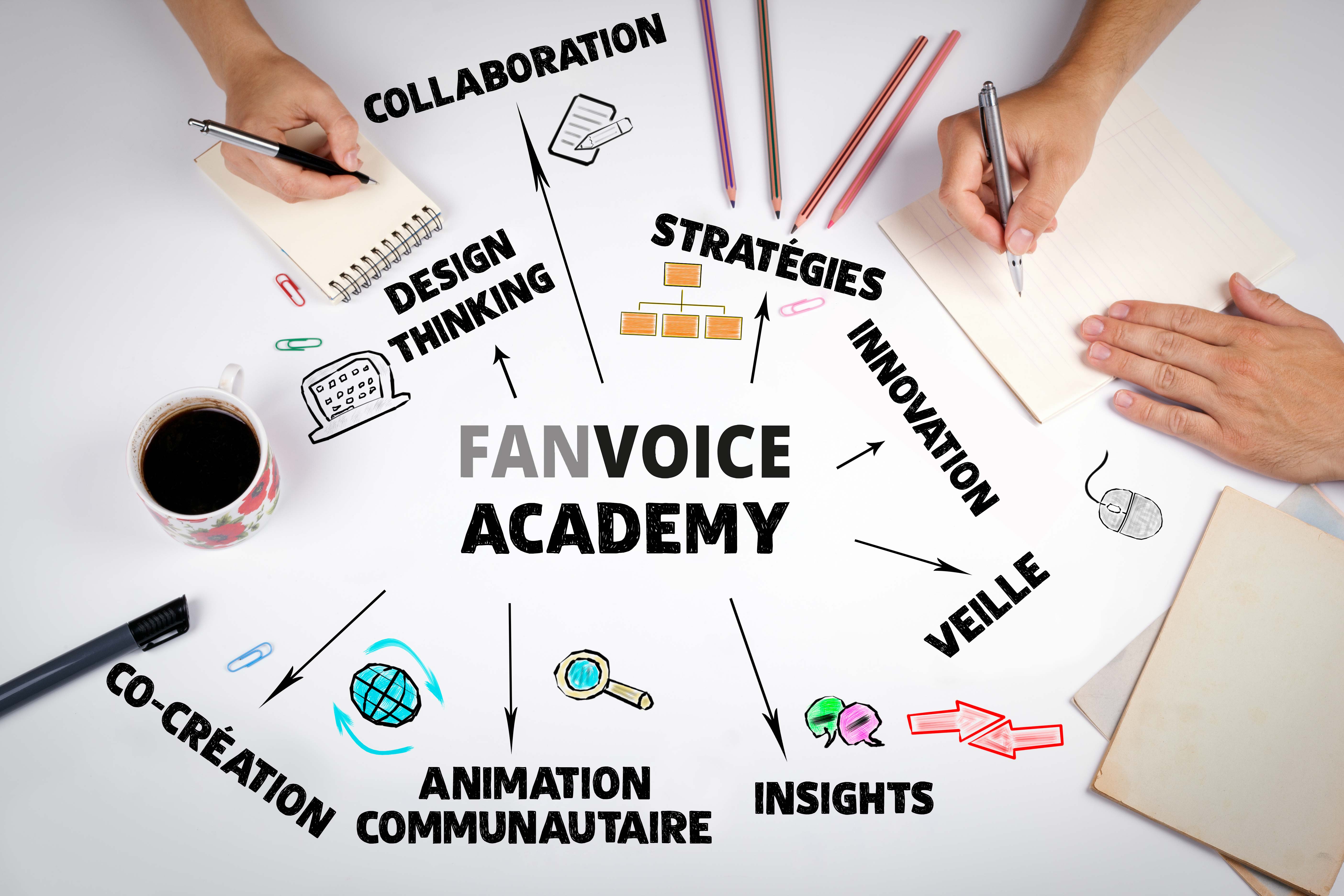 FANVOICE lance la FANVOICE Academy : le premier programme de formation continue dédié à la co-création et à la gestion de communautés. FANVOICE porte, avec ce projet, la volonté de permettre à tous les professionnels qui le souhaitent de prendre en main le sujet de la co-création, de la réflexion stratégique à la mise en place opérationnelle et l’animation de communautés, en passant par la réalisation de « Campagnes d’idéation / co-création / betas-test »  de bout en bout.