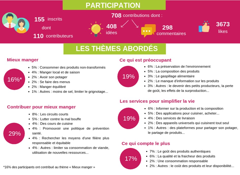 La campagne a permis d’engager une communauté de consommateurs autour d’une discussion sur l’alimentation durable. Une campagne très conversationnelle et réussie, qui a permis de fédérer un noyau communautaire de 110 contributeurs et de récolter 708 idées et commentaires.