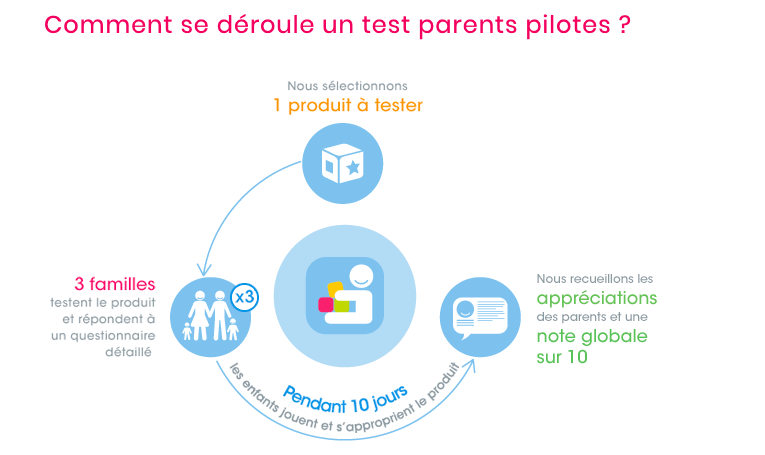 En près de 30 ans d’existence, Oxybul, éveil et jeux, marque du groupe IDKids n’a cessé de développer des produits aux côtés de parents, de crèches ou bien encore de professionnels de l’enfance pour faire de chacun de ses produits, un jeu en phase avec les besoins de nos petits bambins. Un enfant qui prend plaisir à jouer prend confiance et apprend sans s’en rendre compte. La marque souhaite ainsi garantir que chacun de ses produits offre des caractéristiques ludiques. Et bien évidemment, qui mieux que les parents sont les meilleurs évaluateurs du plaisir de leurs enfants ? Ce sont ainsi près de 2 500 Parents Pilotes qui régulièrement, donnent leurs avis sur de nouveaux jouets que développe la marque. Cette communauté est sollicitée à travers un processus bien ficelé :