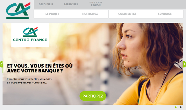 Après ses projets participatifs autour du parcours clients dans le cadre du crédit immobilier, et le crowdstorming lancé sur le sujet (pas facile) du patrimoine, la Caisse Régionale Crédit Agricole Centre France a une nouvelle fois ouvert le bal en se lançant dans cette discussion sans langue de bois avec ses clients, relayée depuis peu par la Caisse Régionale Centre Loire… Les clients, sollicités pour la 3e fois en 1 an par leur Banque sur ce type de dispositif, jouent de plus en plus le jeu et se confient : ils ont déjà partagé plus 850 idées et commentaires rien que sur la Région Centre France.