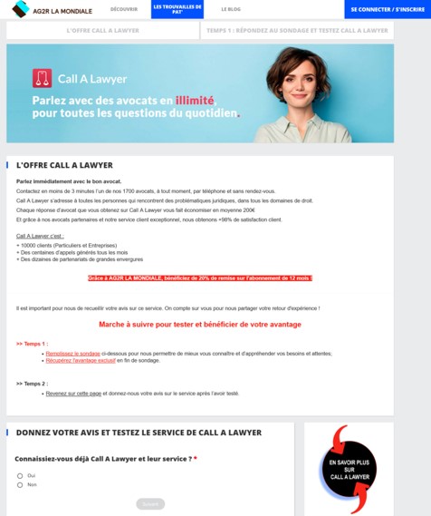 TEMPS 2 – Tester le service : le participant est invité à aller sur le site du partenaire pour utiliser son avantage promotionnel et tester pendant près de 2 mois le service en situation réelle.
