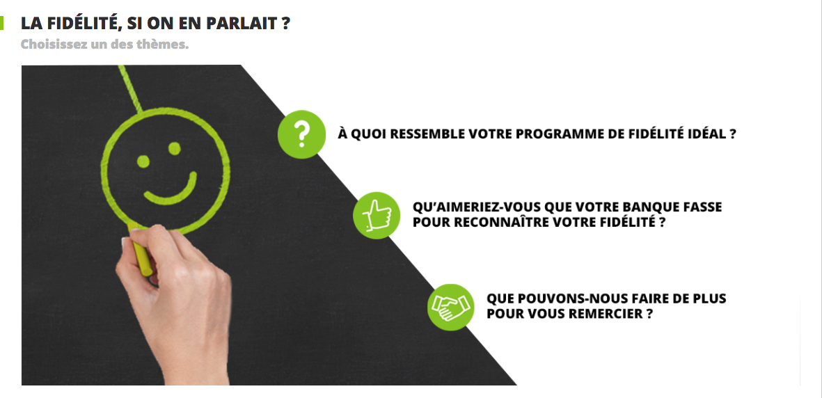 86% des consommateurs sont d’accord pour co-créer avec les entreprises. Ils souhaitent échanger avec les marques, partager leur avis suite à une expérience, proposer des idées pour l’améliorer, créer une relation avec la marque. Ce cadre là impose une écoute de l’avis client pour récolter ces feedbacks précieux pour la marque. A titre d’exemple, le Crédit Agricole tient même compte des contraintes géographiques locales pour organiser ses campagnes d’idéation et de co-création. Ainsi, chacune de ses 39 Caisses Régionales peut proposer ses propres sujets de discussions pour pouvoir recueillir et s’adresser à son propre environnement. La Caisse Régionale d’Anjou Maine a choisi de solliciter des avis clients dans sa région autour de la notion de fidélité (avec sa banque), mobilisant 700 idées et commentaires constructifs en à peine 1 semaine, puis 500 de plus la semaine suivante.
