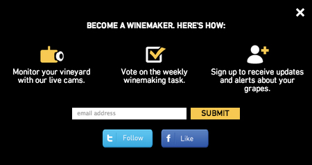 Columbia Crest’s, l’une des plus grandes et des plus célèbres caves à vin de l’Etat de Washington aux Etats-Unis, va utiliser le crowdsourcing durant les 18 prochains mois afin de produire 1000 caisses de bouteilles de Cabernet Sauvignon entièrement co-crées grâce au crowdsourcing (et à consommer avec modération). Le nouveau site interactif créé pour l’occasion – http://www.crowdsourcedcabernet.com/ – permet à n’importe qui de se joindre au processus de production de vin. Les internautes déterminent par le biais de votes hebdomadaires comment les vignes doivent être entretenues, irriguées, récoltées et mélangées. Les participants ont accès à des analyses météorologiques, des données saison après saison, et ils peuvent même observer les vignes et l’avancement de la production jour après jour, en direct via trois webcams !