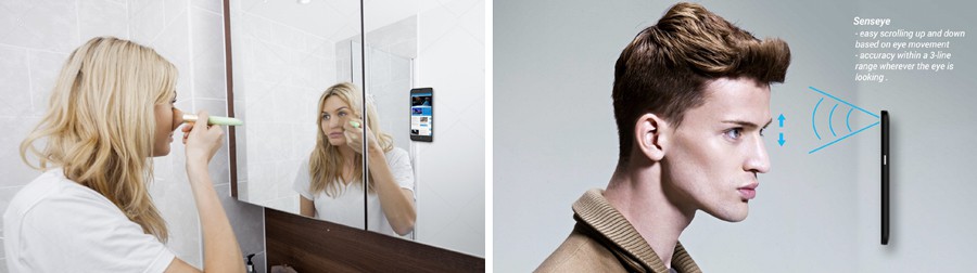 La principale caractéristique innovante du téléphone Hawkeye est la technologie d’eyegracking (suivi des mouvements des yeux). Celle-ci permettra au téléphone de reconnaître les mouvements des yeux et de défiler automatiquement les pages du haut vers le bas ou de gauche à droite. De plus, ce smartphone aura la capacité d’être collé aux murs et aux surfaces grâce à son auto-adhésif. Cette caractéristique pourra permettre aux individus de regarder des vidéos en se maquillant par exemple.